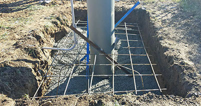 Concrete Foundation is also known as a concrete footing. Footings are an important part of foundation construction. They are typically made of concrete with rebar reinforcement that has been poured into an excavated trench or hole. The purpose of footings is to support the foundation and prevent settling. Footings are especially important in areas with troublesome soils. Placement of footings is crucial to provide the proper support for the foundation and ultimately the structure. This is the last step in installing your sign.
