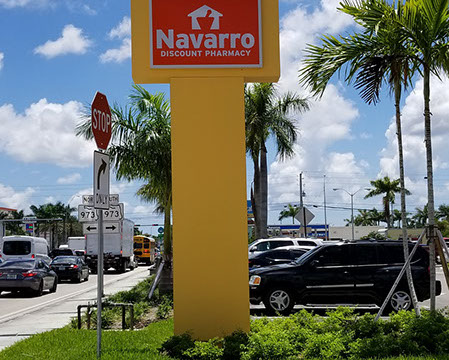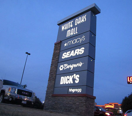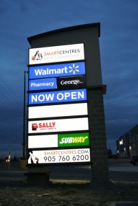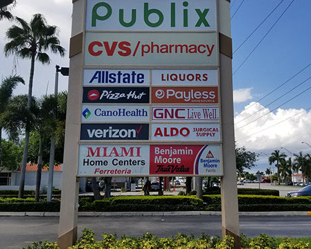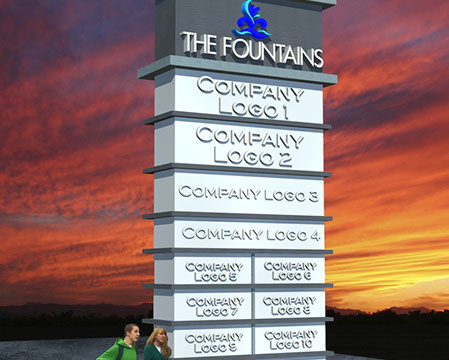 Pylon Signs, typically custom lightboxes, come in different shapes and sizes. For single businesses a large lightbox with lettering is affixed to a large pole or is a self-standing 3-D fixture with several faces.